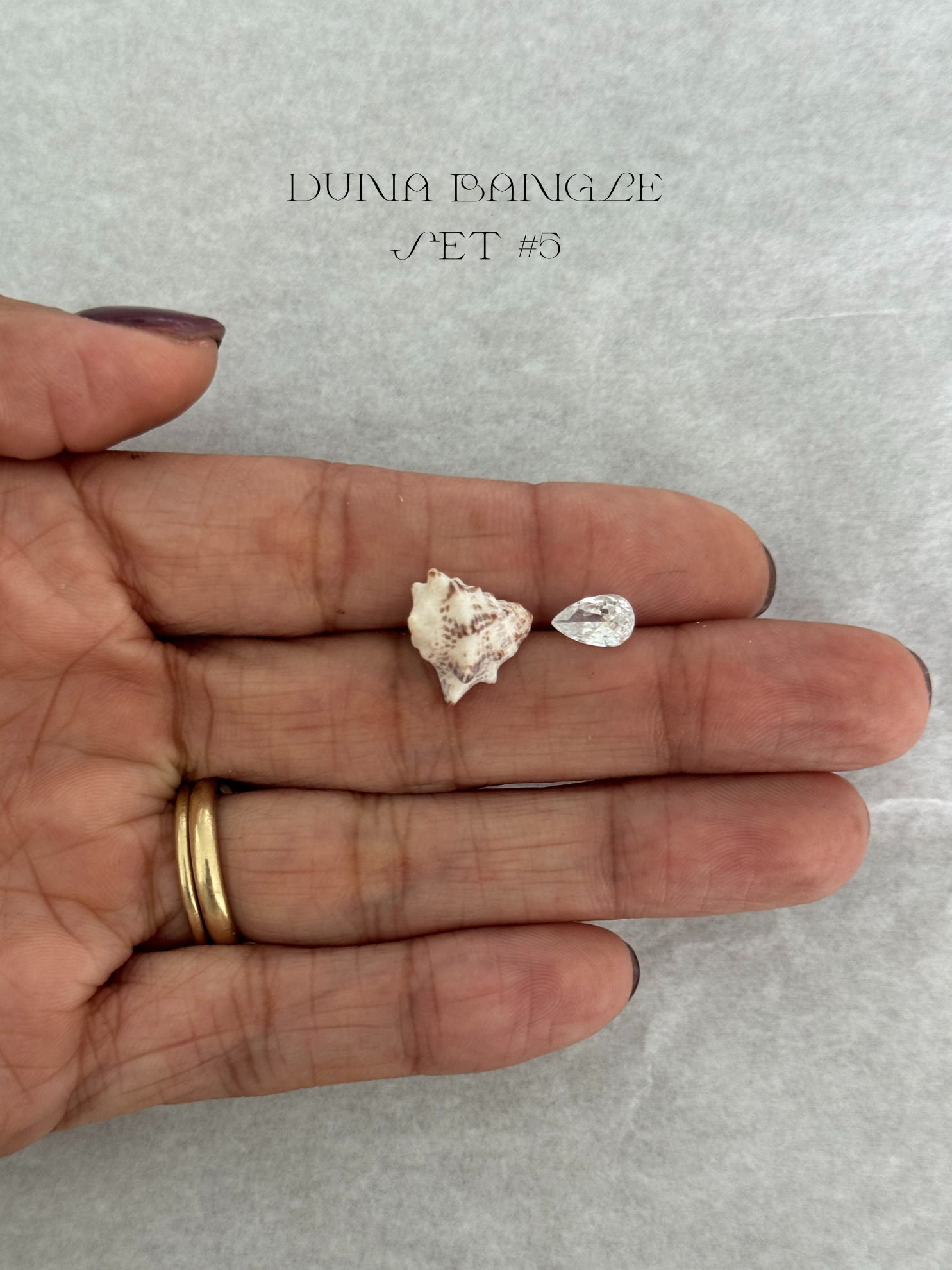 El diseño celebra la belleza natural del mar: incluye una concha real recolectada a mano directamente en la playa — nunca se repite, por lo que cada brazalete es verdaderamente único.